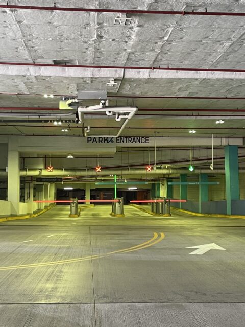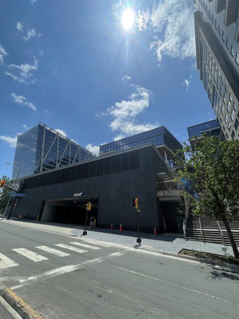 The garage entrance is on the right side near Davio’s, Matchbox, Starbucks, and Founding Farmers.